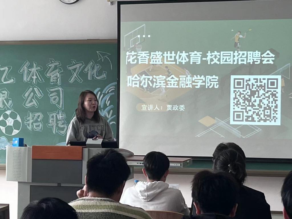 上海动亿体育文化发展有限公司来哈尔滨金融学院缓解了就业压力,为公司寻将才,为人才找舞台。同时,学生们可以为新时期我国体育工作改革和发展,力争实现从体育大国到体育强国的转变贡献自己的力量。