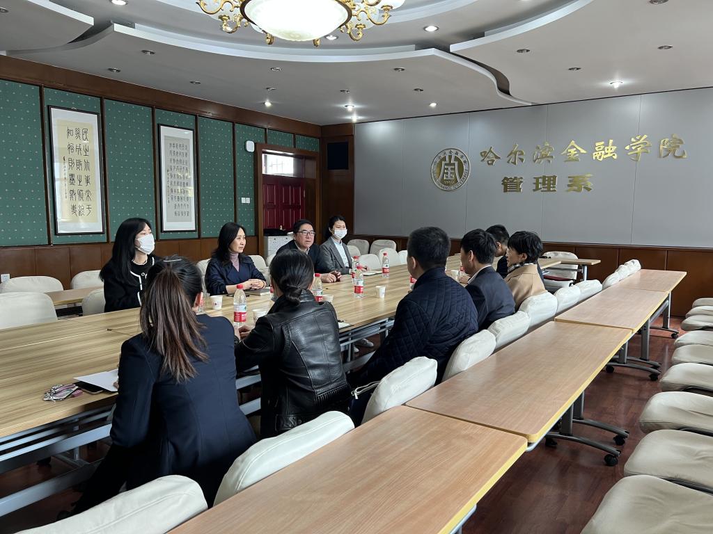 4月18日,龙江银行股份有限公司权益保护部总经理王霁平等一行6人,来到管理系进行沟通洽谈,管理系党总支书记赵智男、系主任姚旭、就业联络员李琳、辅导员王白璐在经管楼三楼会议室热情接待来访,并召开访企拓岗洽谈会。