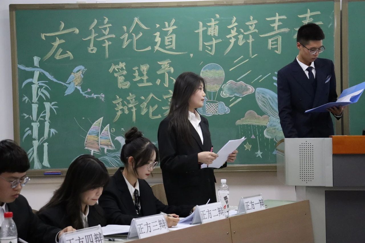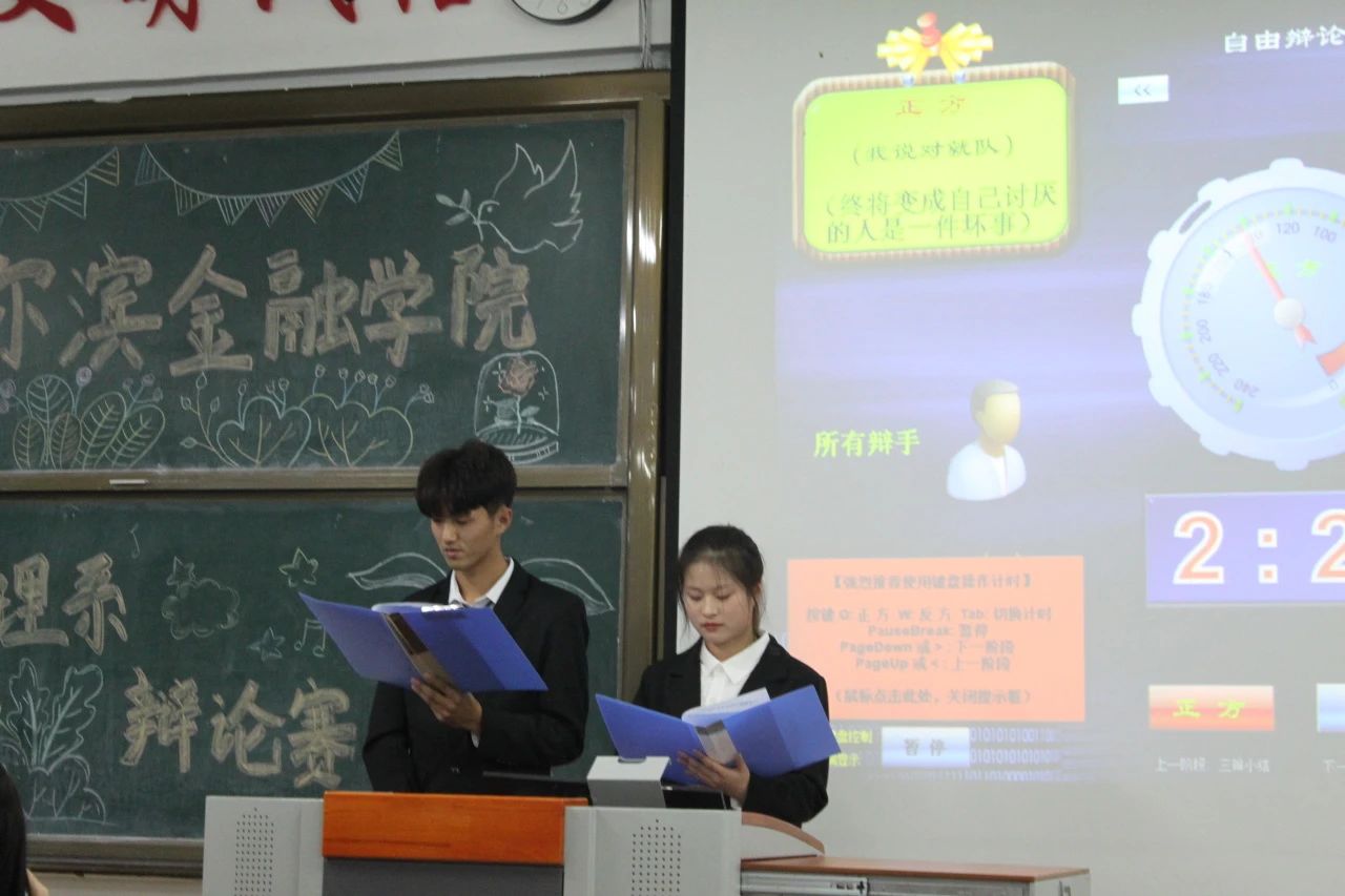 为了培养同学们的团队协作精神,提高逻辑思维和语言表达能力,丰富大学生课余文化生活,进一步充分展示我院青年积极向上的精神风貌,营造积极向上、努力进取的校园氛围,弘扬辩论精神,提升思辨能力。哈尔滨金融学院管理学院于2023年11月5日16时在综合楼115、123和127室举办了“宏辞论道,博辩青春”辩论赛。管理学院学生会主席团出席本次活动。