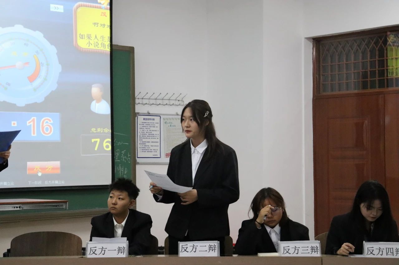 在主持人向大家介绍辩论赛规则后,比赛正式开始。同学们逻辑清晰,用巧妙的语言讲述自己的观点,正反方你来我往,慷慨激昂,在攻辩环节双方辩手显然都经过了充分的准备,他们引经据典地向对方发问。