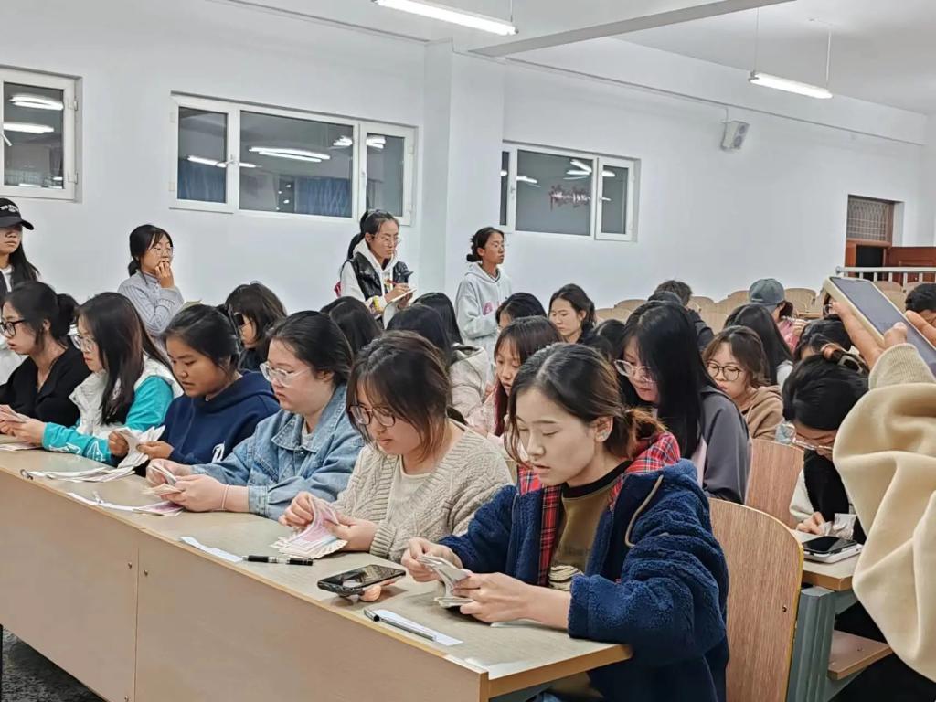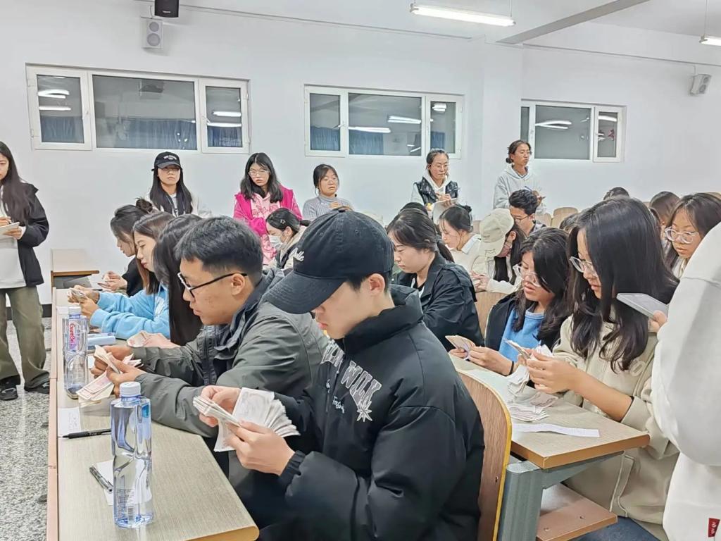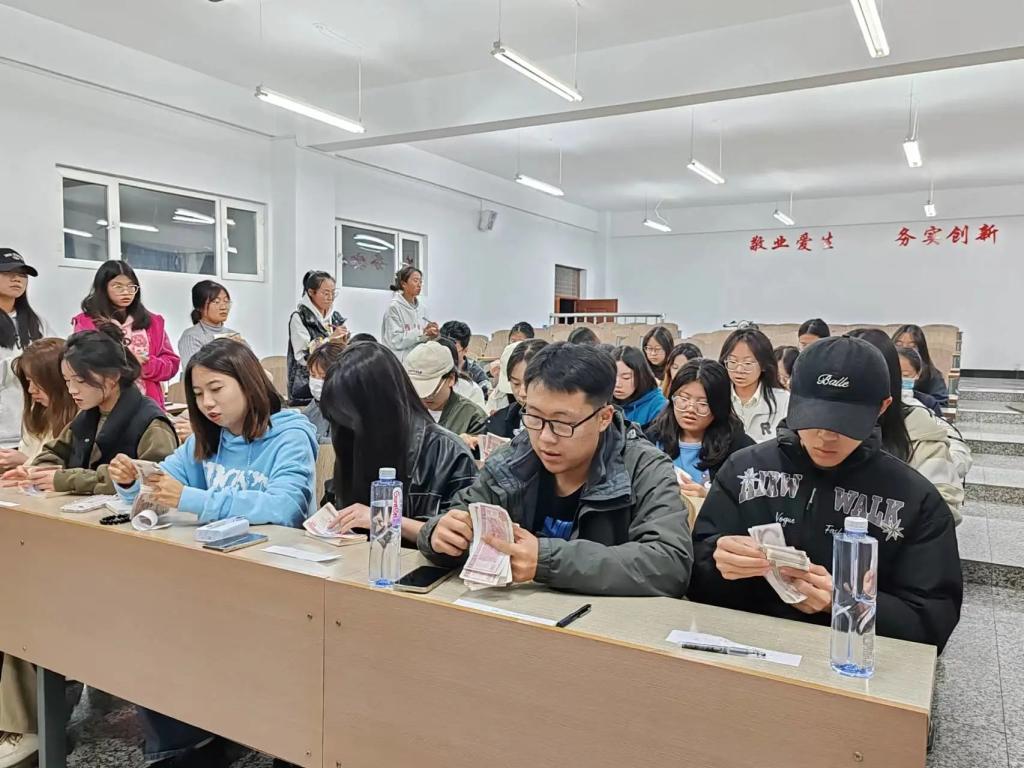 为让我院学子更好感受金融特色与魅力,激发同学们对实践技能的热情,进一步提升大家的专业技能水平,配合学院教学与实际相结合的教育方式,强化学生实践操作能力,哈尔滨金融学院管理学院于2023年10月10日18时在综合楼223室开展点钞大赛初赛。