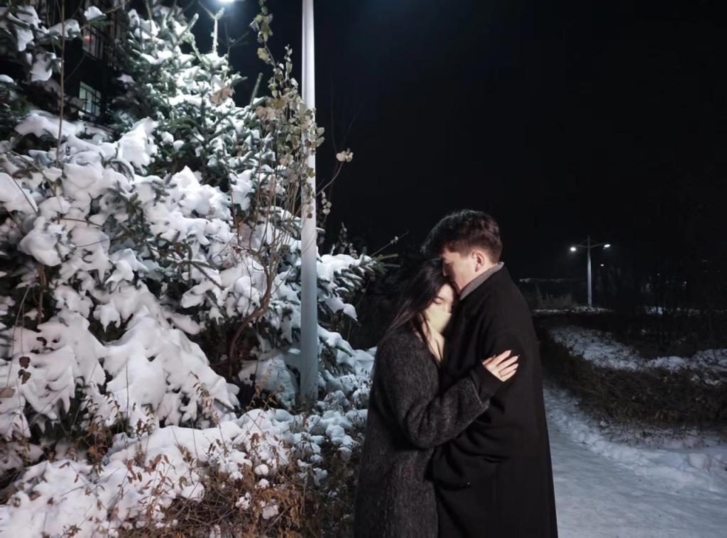 在那寒冷的雪夜里,他们相依相偎,仿佛是整个宇宙中唯一的温暖。他们的拥抱是一幅静谧而又深情的画面,彼此间弥漫着温暖和爱意。在这寒冬的拥抱中,他们的爱情如同雪花一般纯净,树木一般深厚,无比坚定而又柔软。