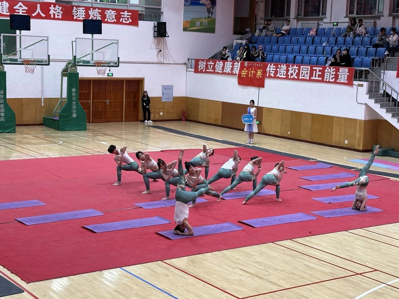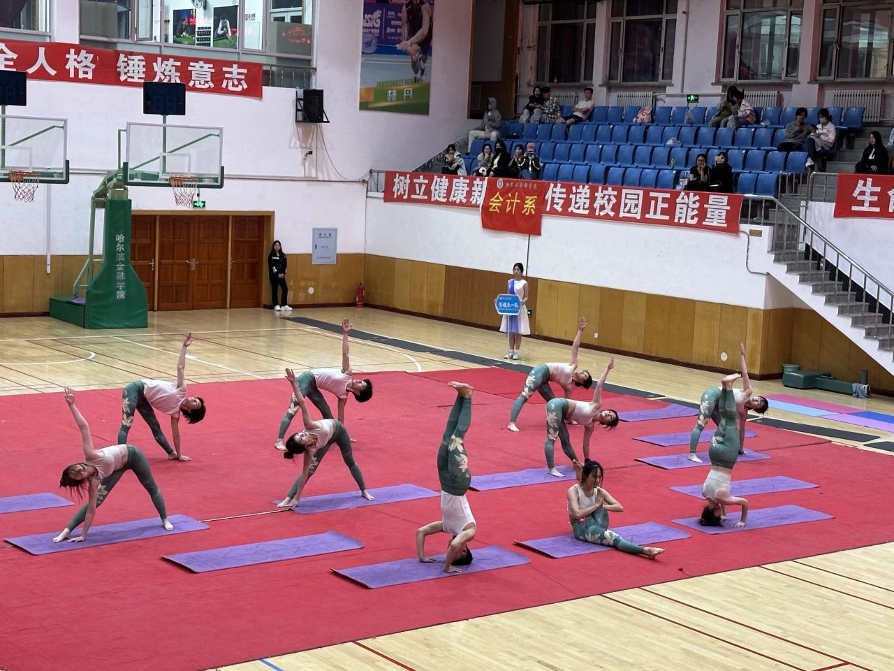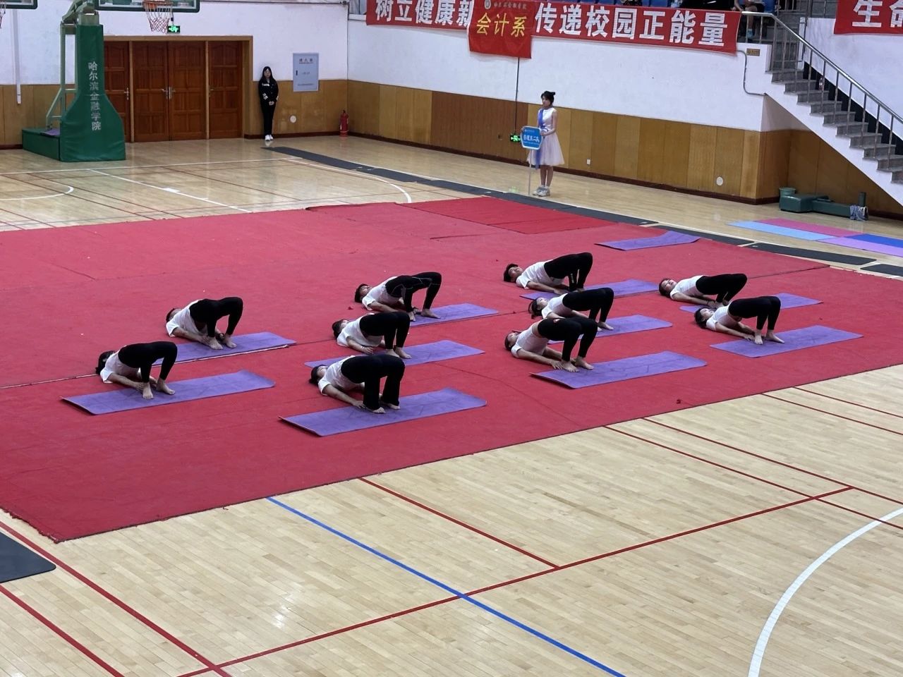 为了丰富同学们的课余生活,增强学生的凝聚力和向心力,提升其综合素质,展现出我院朝气蓬勃的精神风貌,管理学院于5月15日18时参加了哈尔滨金融学院举办的“阳光体育”竞赛——瑜伽比赛。管理学院辅导员袁泉老师、学生会主席许文龙和行政联络员赵禹来到了比赛现场为选手助威。