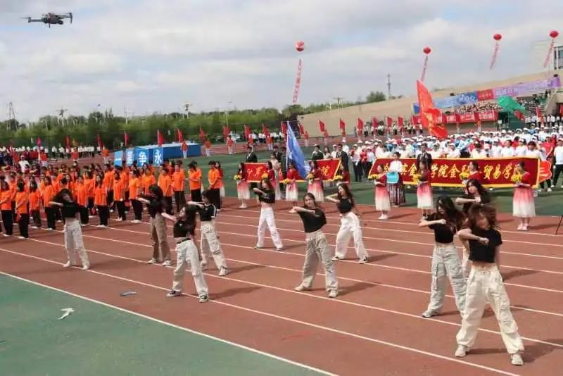 管理学院方阵步伐整齐划一,同学们精神抖擞,他们的眼神中透露出坚定与自信,口号声响彻云霄,展现出强烈的团队精神和拼搏意志,精彩的团体舞蹈震撼登场,动作轻盈而富有节奏感,瞬间点燃了全场的热情。