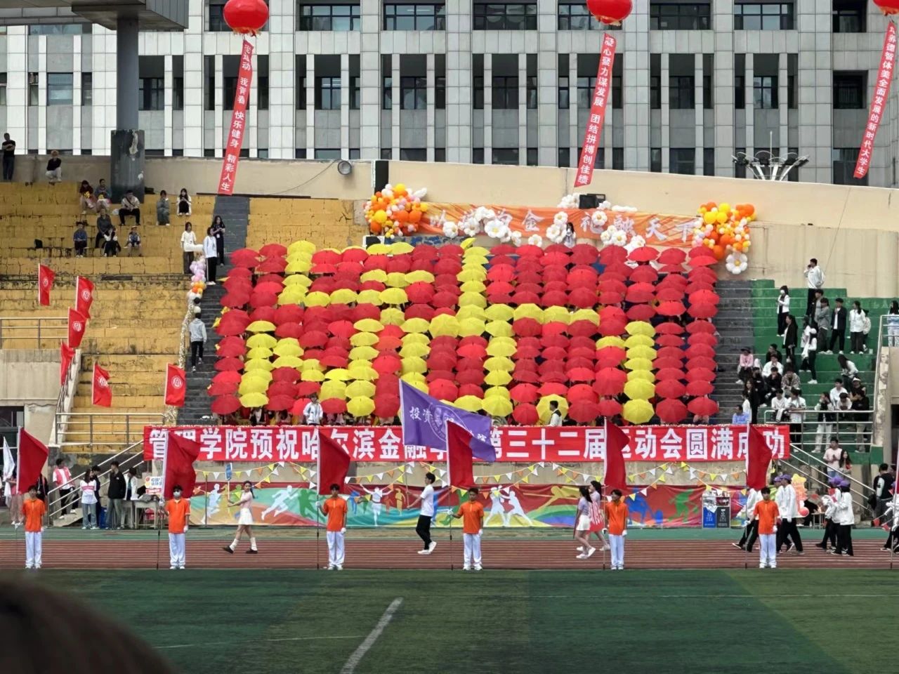 在哈尔滨金融学院第三十二届运动会上,热烈祝贺管理学院二队勇夺学生组团体总分季军,管理学院一队荣获学生组团体总分第五名的好成绩!