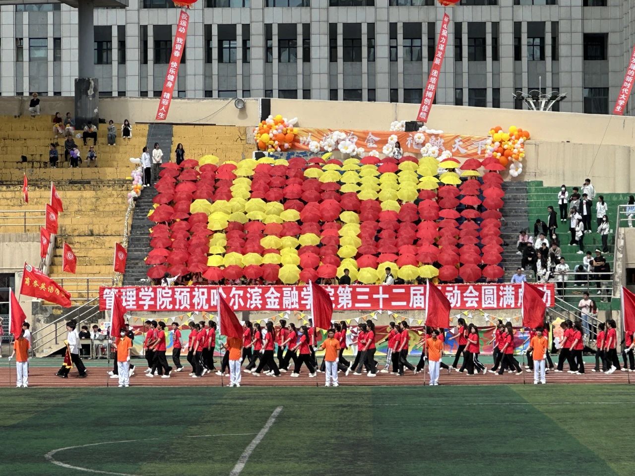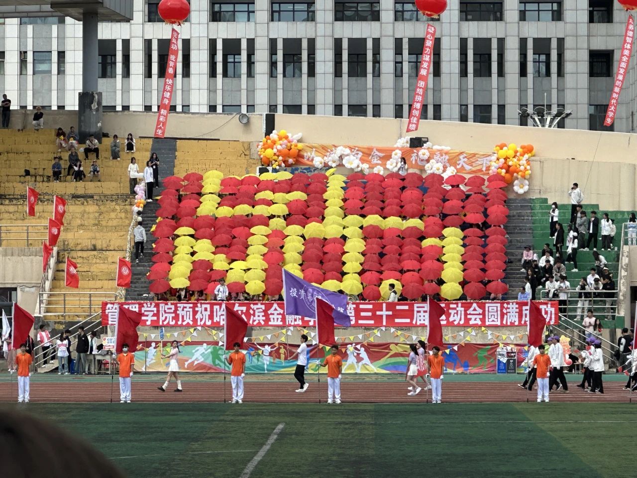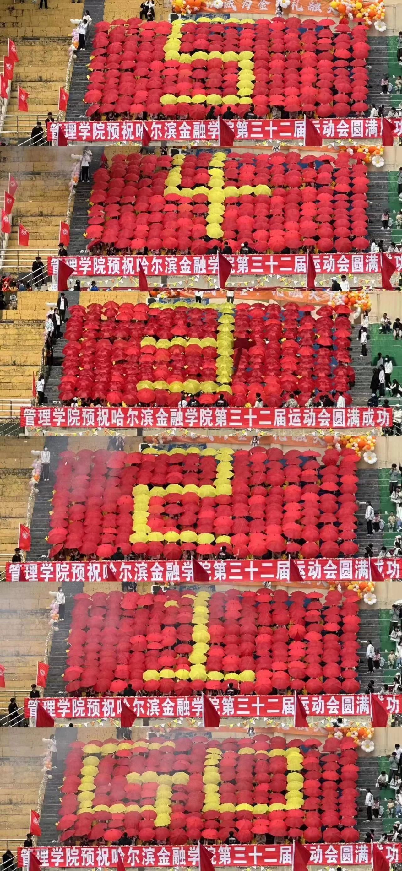 用六组图案展示出我院的朝气蓬勃的精神面貌:“五四三二一 GO”伴随着彩烟,为运动员们注入无限激情,将拼搏精神铭记于心。