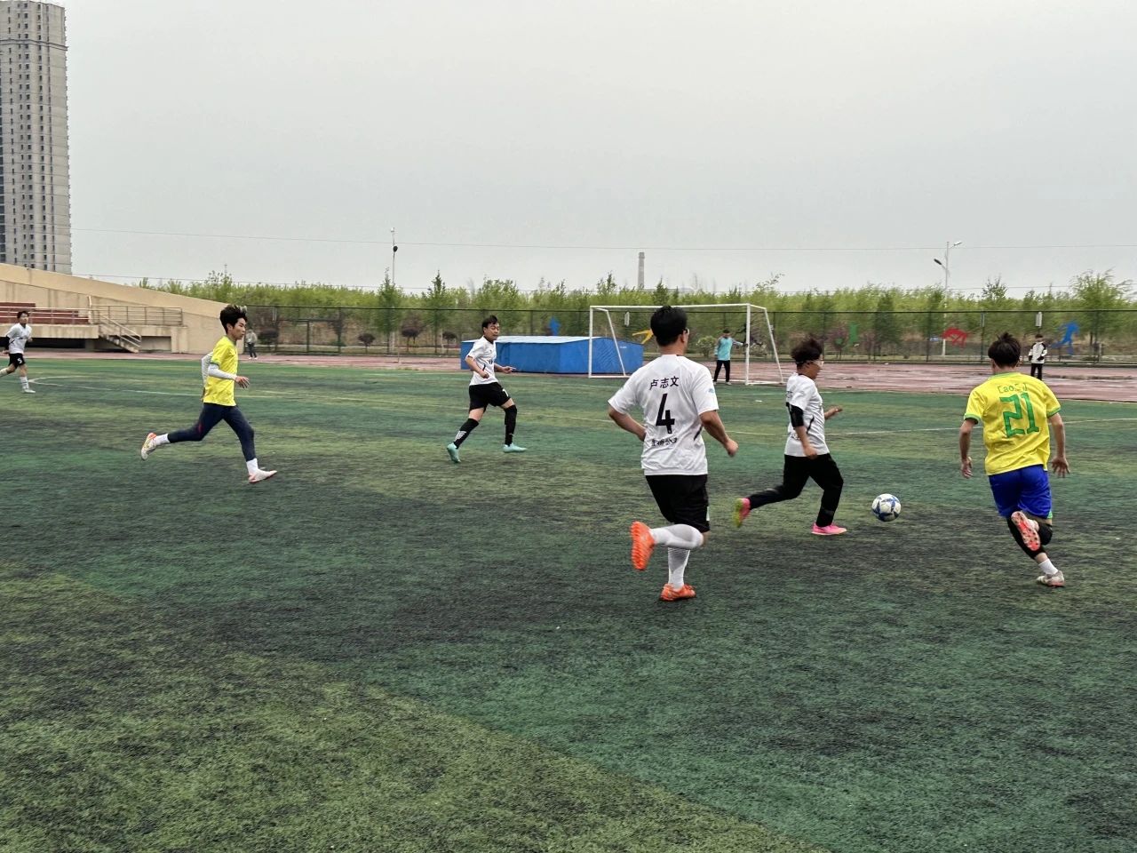 赛场踢出希望,绿茵放飞梦想。9日,管理学院一队对战计算机与数学学院的比赛在此时激情上演。随着裁判一声哨响,球赛开场,双方队员迅速进入状态,展开了激烈的角逐。球员们在绿茵场上奔跑、传球、射门,他们的动作流畅而有力,技术娴熟而精湛。观众们也被他们精湛的球技所感染,发出阵阵喝彩和掌声。经过紧张激烈的比赛,最终,管理学院一队以1:0的比分胜出。