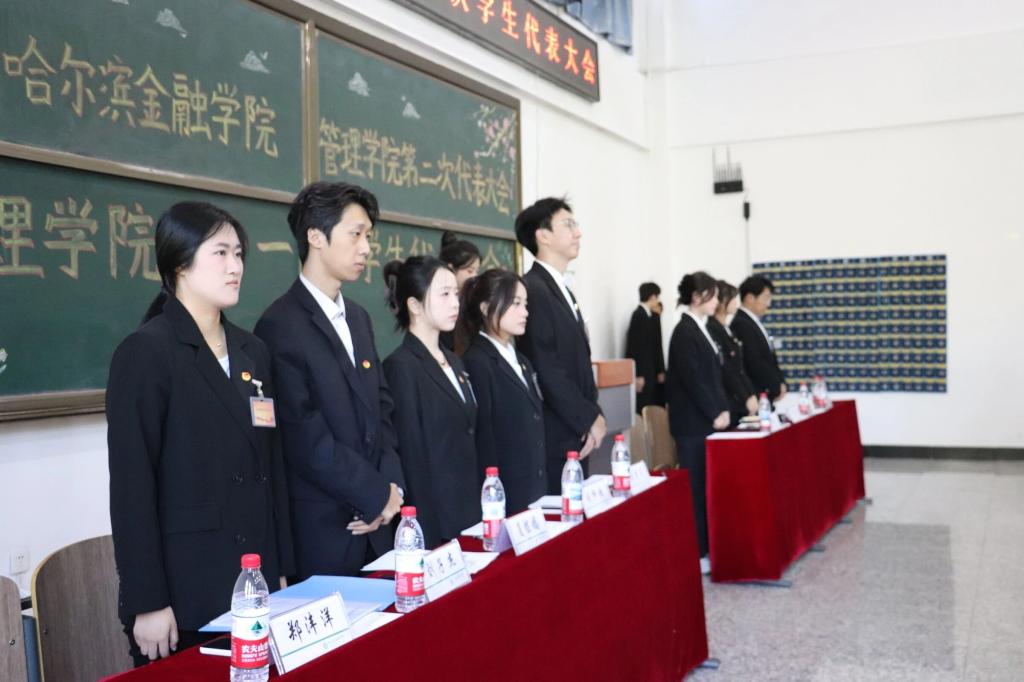会议进入核心议程阶段,大会审议通过《哈尔滨金融学院管理学院学生会章程》,选举通过由卞超凡等7名同志组成的共青团哈尔滨金融学院管理学院第二届团委委员,在本次会议上,听取第一届团委《工作报告》选举哈尔滨金融学院管理学院第二届委员会和第十一届主席团。