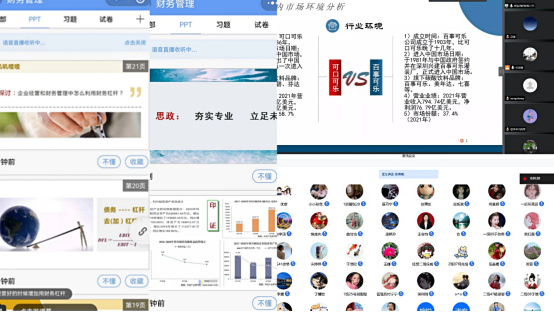 张薇老师以《财务管理》课程向大家展示了一堂精彩的线上观摩课。整个课程知识点讲解清晰透彻,启发互动循循善诱,不断地抓住、留住、吸引学生注意力;张海霞老师通过《国际市场营销》课程向大家呈现了一堂优秀的线上观摩课,整个课程的教学设计思路清晰,由学生总结知识点,使学生对知识点的理解由浅入深,构建情景,启发学生思维,注重师生互动;高微老师的《心理健康教育》课程结合疫情防控讲解如何减压,充分体现了教师主导,学生主体地位,课堂气氛活跃;赵璇老师的《财政学》教学目标明确,引用实际最新的案例,将课程内容与学生专业理论相结合,培养学生分析能力的同时,引导学生积极思考。