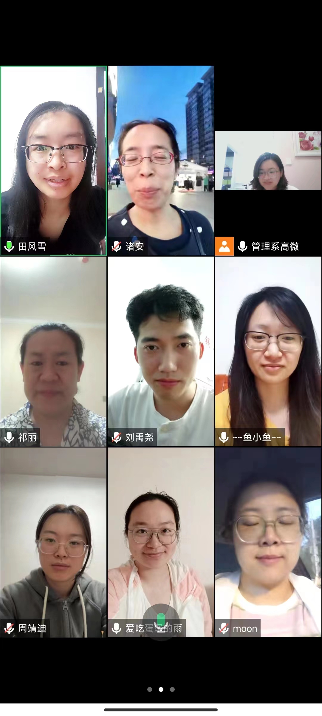 6月9日,管理系《心理健康教育》课程组通过腾讯平台召开了线上教学研讨会,课程组全体成员参加了本次会议,会议由课程负责人高微主持。