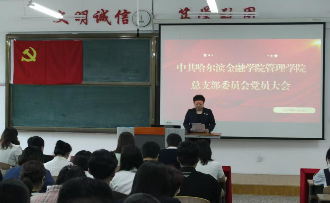 根据《中国共产党章程》《中国共产党普通高等学校基层组织工作条例》以及《中共哈哈尔滨金融学院委员会2024年总支部(直属支部)委员会换届选举工作方案》等有关规定,经校党委批准,2024 年 9 月 12 日,中共哈尔滨金融学院管理学院总支部委员会党员大会在综合楼123教室顺利召开,管理学院全体师生党员参加了此次大会,此次会议由管理学院院长柳欣同志主持。