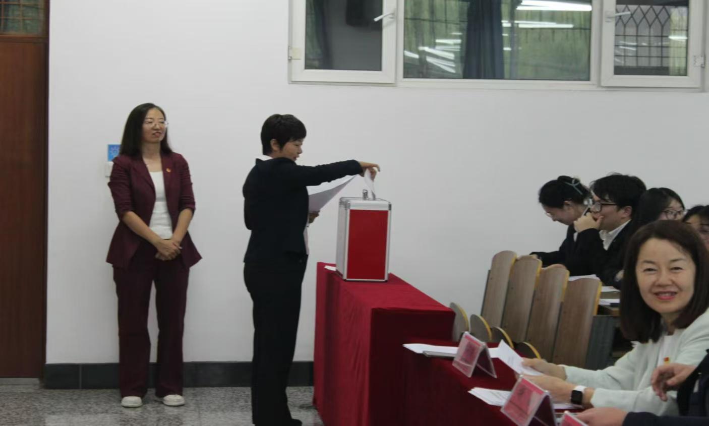 随后,大会严格按照党组织换届选举程序进行。以举手表决的形式,一致通过了大会选举办法、新一届党总支委员会委员候选人名单以及监票人、计票人名单。经无记名投票,大会差额选举产生邱鑫、赵丹丹、荣红霞、柳欣、郭爽五名同志当选新一届总支部委员会委员。