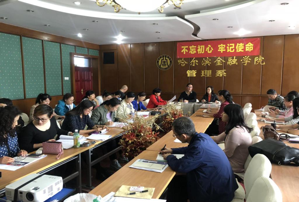 按照学院党委的统一部署,以党的十九大精神和习近平新时代中国特色社会主义思想为指导,深入贯彻落实陈宝生同志在新时代全国高等学校本科教育工作会议上的讲话精神,坚持不懈抓学习,深化作风整顿工作的工作要求,管理系党总支于2018年9月5日13点在行政楼三楼会议室组织召开全体教师政治理论学习会议,共同学习《陈宝生同志在新时代全国高等学校本科教育工作会议上的讲话》精神。