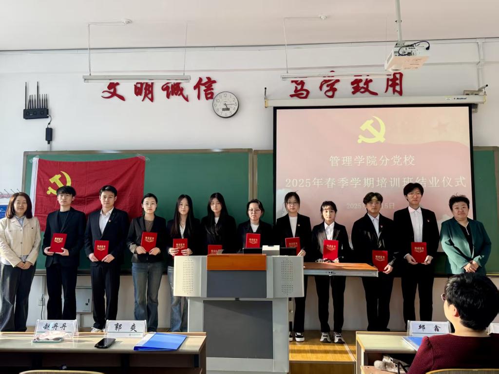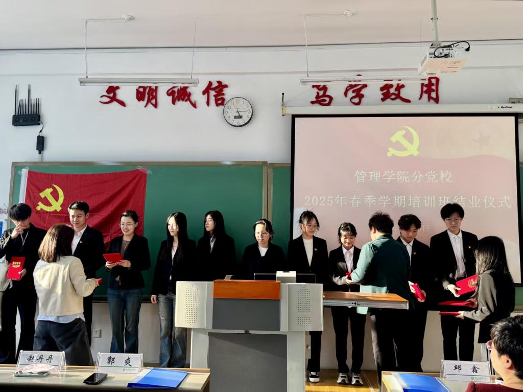 伴随着《国际歌》的激昂歌声,管理学院分党校2025 年春季学期培训班圆满落幕。管理学院党总支将持续优化培训体系,严格把控培养实效,着力打造本领高强、信念坚定的入党积极分子和党员队伍。相信培训班全体同学,也定会将所学知识内化于心、外化于行,以更加饱满的精神状态,为实现中华民族伟大复兴的中国梦贡献自己的青春力量!