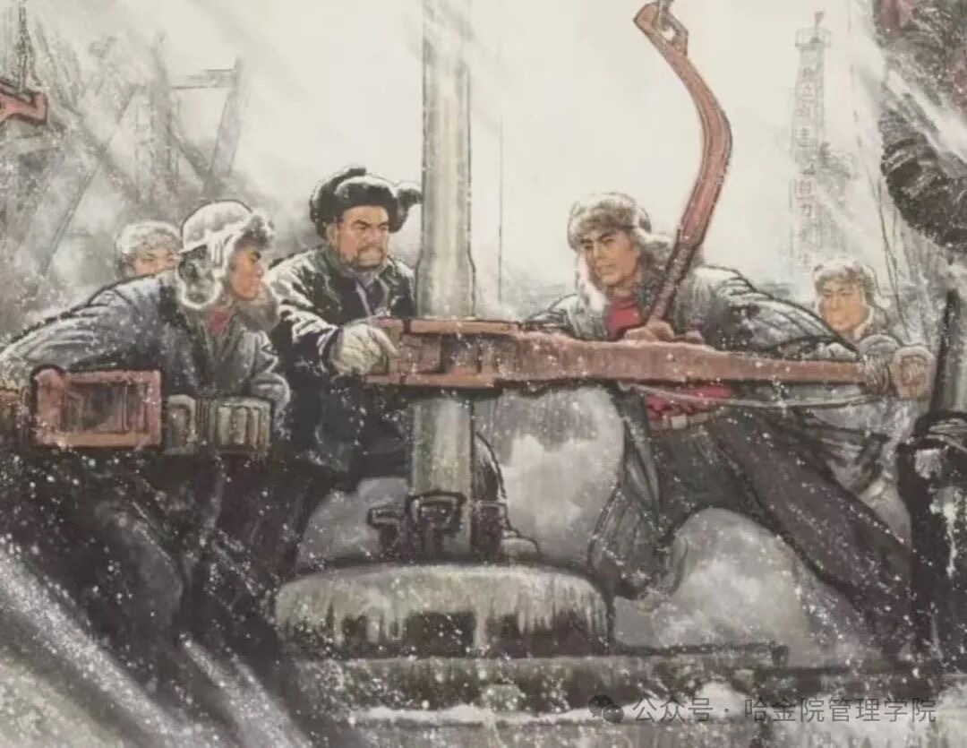 这是新中国在特别困难时期进行的特殊会战,四万多人的会战队伍一下子集中到冰天雪地的大荒原上,工人们没有房住,只能挤在自己建的地窖子里,没有粮食就挖野菜充饥,当时称之为无粮三餐保卫战。就是在这样艰苦的条件下,王进喜的钢铁1205钻井队向地层深处突进,王进喜五天五夜没怎么合眼,带领钻进队奋战在冰冷的荒原上,向地心钻进。王进喜说,石油工人一声吼地球也要抖三抖。1960年4月19日,1205钻井队在大庆油田打下的第一口井,终于喷出了油流。第一口井出油后不久,1205钻井队准备转向第二口井,就在这时,王进喜被钻杆砸伤了右腿,他顾不上在医院治疗,偷偷跑回来到了井场指挥打第二口井的会战。打到700米时,由于地层压力太大,发生了井喷,工人们用水泥配制泥浆,制作井喷,没有搅拌机,水泥沉在泥浆池底,王进喜纵身跳进泥浆池,用身体搅拌泥浆,王进喜说:宁可少活20年,拼命也要拿下大油田。