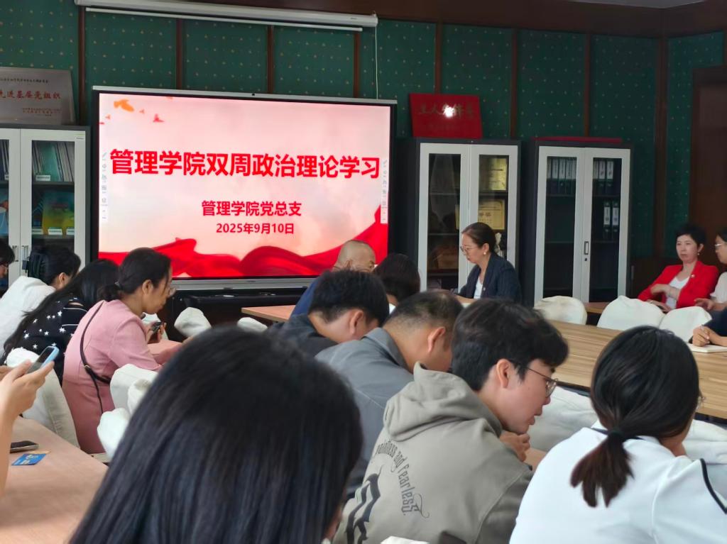 2025年9月10日下午,管理学院在经管楼313会议室开展政治理论学习,会议由党总支书记郭爽主持,全体教职工参加。