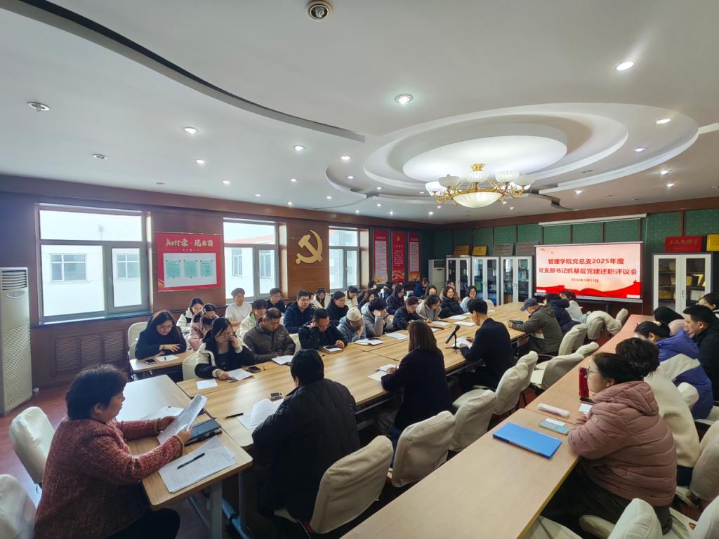 按照学校党委《2025年度党组织书记抓基层党建述职评议考核工作方案》部署,3月11日,管理学院党总支组织召开 2025年度党支部书记述职评议会议,党总支全体委员、各党支部书记、全体教师党员及学生党员代表参加会议。